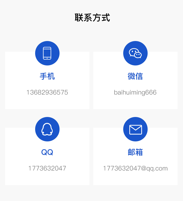 邮箱:1773632047@qq.com微信号:baihuiming666